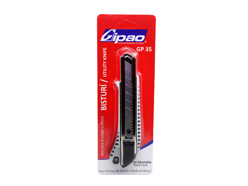 CARACTERÍSTICAS: •Metálico con caucho antideslizante para un mejor agarre •Con cuchillas reemplazables •Con láminas de 18 mm •Autoajustable