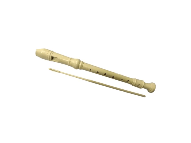 Instrumento de viento dulce fabricado en plástico resistente, ideal para iniciación música y uso escolar.